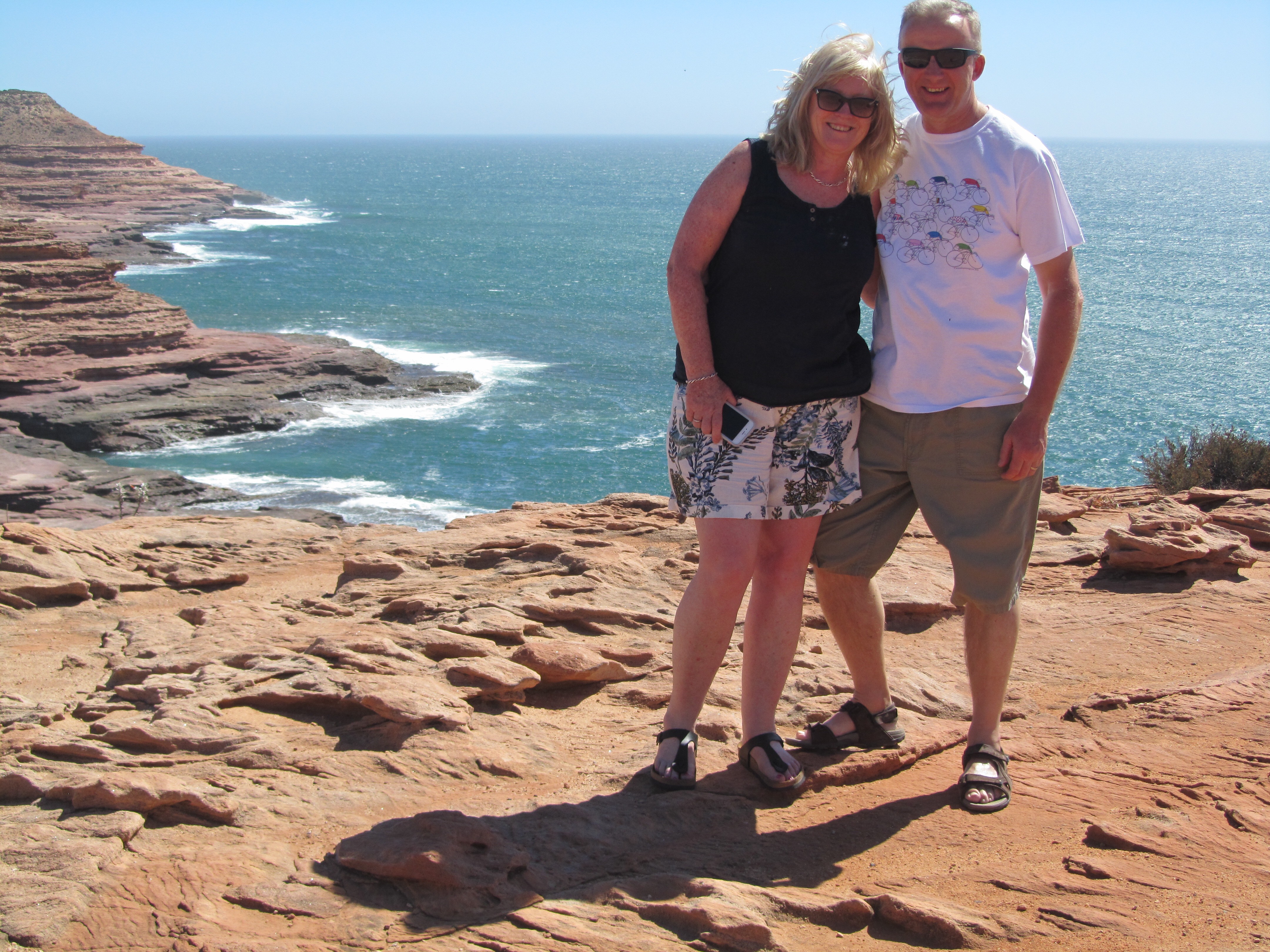 Whilst we eat our sandwiches in the car, the three camper vans in the lay-by in front of us head out onto the road, the last one mis-judges the speed of the Road Train coming down the road and must have had a rear view mirror full of an angry Aussie lorry driver as he slammed on his brakes and had the horn blaring. Quite how there was not an accident, I’ll never know. About 45 mins down the road we are in Kalbarri, stopping at various points on the way to view the stunning scenery.