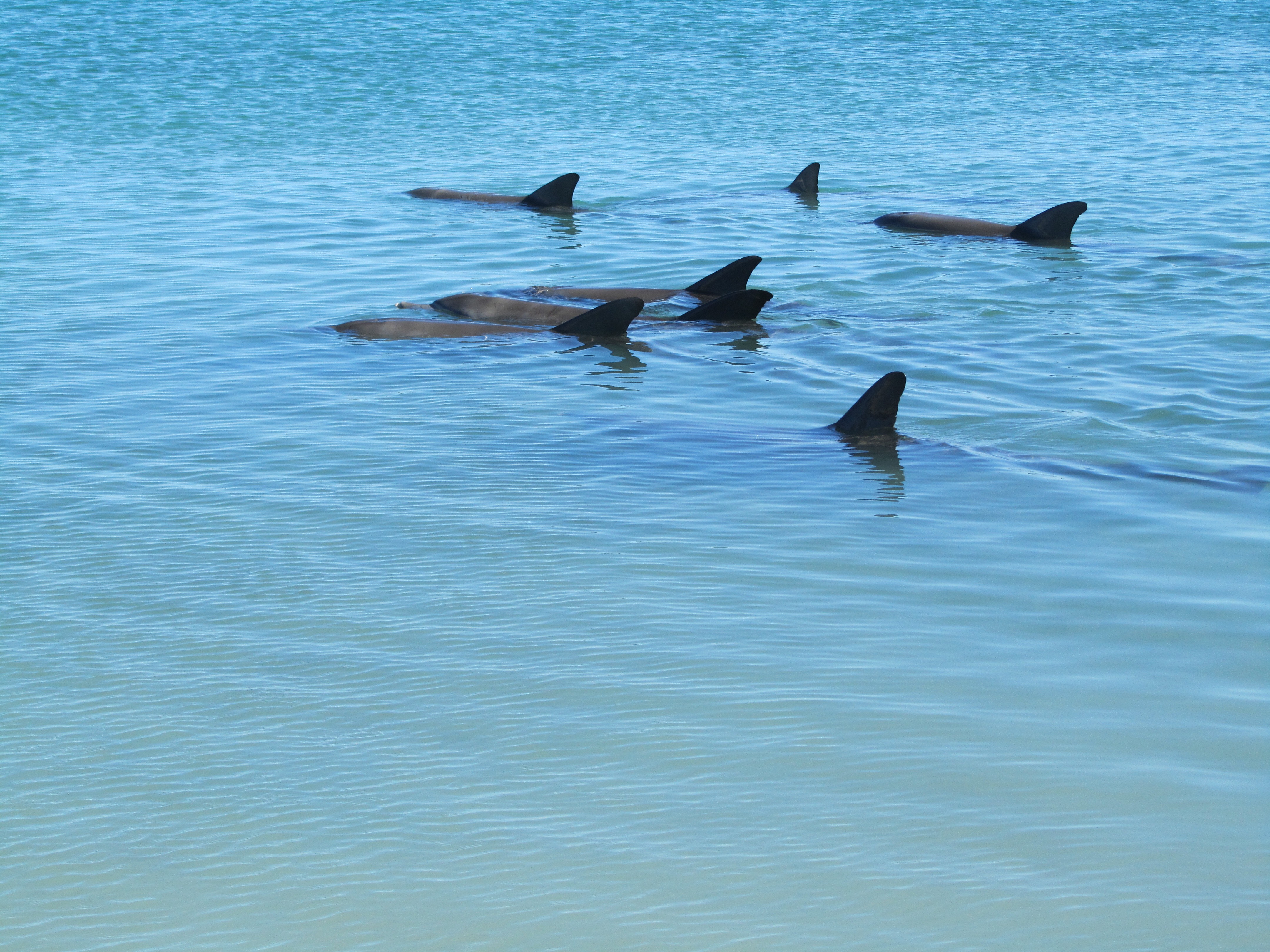 After the day’ special a A$3 Banana Mike shake was consumed (by us, not the dolphins) we went for a swim as the temperature climbed. Four or Five of the Dolphins returned for playtime and were joined by a pelican!